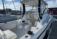 Built on Whaler’s legendary AccuTrack hull with a deep-V entry, the 255 delivers a soft, confident ride when the afternoon breeze fills in and the Bay gets lumpy. With a 150-gallon fuel capacity, this boat has the range to chase birds offshore, make a comfortable run to the Farallones, or cruise up the Delta for the weekend without watching the fuel gauge.
