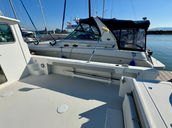 Built around Pursuit’s PURE TECH SUITE™, the hull is hand-laminated in vinyl ester resin with a resin-infused composite transom and foam-filled stringer grid. Available with up to twin 300 hp Yamaha outboards (totaling up to 600 hp), the DC 306 offers joystick docking, digital steering, and trim tabs for confident offshore performance.