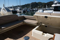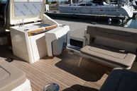 Cockpit galley with sink, refrigerator, grill, storage, and dedicated prep space